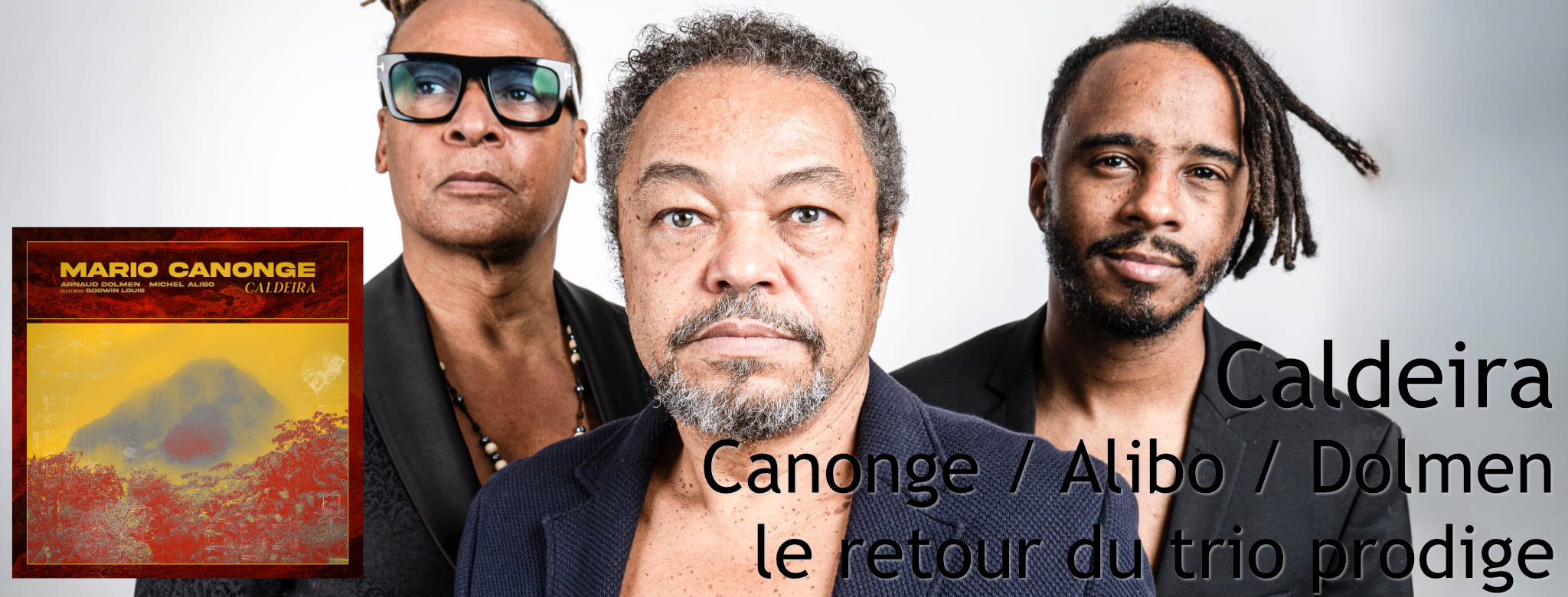 Trois ans après un fantastique premier album qui nous avait renversés, Mario Canonge revient avec son trio bouillonnant, formé avec Michel Alibo et Arnaud Dolmen. Le nouvel opus s’appelle Caldeira et ce nom volcanique n’a jamais aussi bien été porté. De fusion, il est bien entendu question, entre ces trois musiciens qui se pratiquent depuis tant d’années. Et si Mario a fourni les onze compositions de l’album, c’est bien un travail d’ensemble où chacun apporte sa touche, dans les arrangements, le jeu et la vitalité contagieuse qui s’en dégage. Sur trois titres, Godwin Louis, saxophoniste d’origine haïtienne formé à Berklee et nominé aux Grammy Awards, apporte une dimension supplémentaire. Le single de l’album, No Discuss, illustre à merveille le propos de l’ensemble, passant avec un naturel déconcertant d’un hard bop débridé à une biguine jazz au balancement irrésistible. On a l’impression qu’avec un trio de cet acabit, tout est possible. Et ce n’est pas loin d’être le cas, entre le don de la mélodie, la virtuosité de Mario, et l’insolente puissance maitrisée de la rythmique d’Arnaud et Michel, aussi fine que polymorphe, toujours à l’écoute du clavier. Les moments de répit – très relatif ! – sont peu nombreux, mais se dégustent avec délectation, comme le dialogue à quatre de Fire Dance où chacun s’exprime et se répond attentivement, ou bien Au Pied Du Volcan, au calme trompeur. Et c’est évidemment la montagne Pelée qui est au cœur de cette inspiration, autant génératrice d’énergie (Mi Bab, Gospelée) que de souvenirs douloureux (Cyparis Flower, où le passage au Rhodes de Mario ajoute une touche nostalgique). Caldeira s’achève sur l’apothéose forcément explosive de Zanzolé et confirme que nous avons affaire, ici, à l’un des meilleurs trios du jazz actuel, en France et même plus loin.