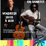 Concert unique de Nicolas LOSSEN et Jorge MARTINEZ en Quartet. Ces 2 guitaristes virtuoses vont offrir un concert aux accents jazzy de très grande qualité.